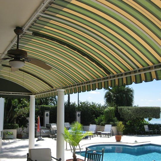 Τέντα καμπύλη κατάλληλη για την κάλυψη εισόδων και παραθύρων. Σταθερή κατασκευή από αλουμίνιο με πανί ή PVC. Χειροκίνητη ή ηλεκτροκίνητη.